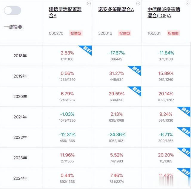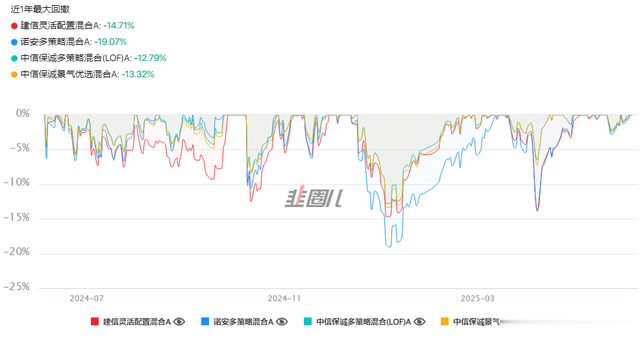 对比文中四只基金,近一年诺安多策略收益最高,但同样回撤也大。